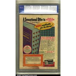 Detective Comics #38 Larson pedigree (DC, 1940) CGC FN- 5.5 Off-white pages. One of the most influential books of the Golden Age. This issue introduced Robin the Boy Wonder, comicdom's first superhero sidekick, and kicked off a trend followed by practically every other company during the 1940s. This particular copy came from the renowned Lamont Larson collection, known for its glossy covers and high page quality. The collection is also known for its occasional foxing and water stains, due to being stored in a Nebraska barn for many over three decades. Detective #38 was one of those affected, showing a dark stain at the middle bottom cover that goes through the entire book, and some light foxing along the spine of the back cover. Besides this, the book is phenomenal, exhibiting perfect edges and spine, deep colors and that famous flowing cursive pencilled signature neatly placed by pharmacist Tryg Hayden, one of the two men responsible for pulling Lamont's books for him. This is certainly one of the sharpest looking copies to ever surface on the market. Overstreet 2002 FN 6.0 value = $9,642. Important notice: We expect to be auctioning lots at the rate of 200-250 per hour. Sometimes eBay Premier live bid software cannot keep up with that pace, so we strongly recommend that you place a realistic proxy bid now as insurance to avoid disappointment. Also please note that all Heritage/CAA lots purchased through eBay Premier carry a 20% Buyer's Premium.