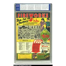 Detective Comics #40 (DC, 1940). CGC FN- 5.5 Off-white pages. The Joker may be trying to disguise himself, but he is actually making his first appearance on a cover of Detective Comics. This book is also the origin and first appearance of the one of Batman's major villains, Clayface. A solid mid-grade copy, this book is perfect for some who is looking for a major Batman key, but doesn't want to sell their house to obtain one. CGC notes: "very minor amount of glue on spine of cover." Overstreet 2003 FN 6.0 value = $1,956. Important notice: Heritage usually auctions material at the rate of 200-250 lots per hour. On some occasions eBay Live bid software or the Internet may not be able to keep up with the pace of the auction. We recommend placing a realistic absentee bid now as insurance to avoid disappointment. Occasionally the auctioneer may eliminate or reject an eBay Live bid, and the auctioneer may also reopen a lot after the close of the eBay live bidding (usually because we missed an audience bid), and may reject your bid even if it shows you as the winning bidder. By bidding via eBay Live, you agree that Heritage may award the lot to another bidder at its sole discretion under the circumstances described above or any other reasonable circumstances. Also please note that all Heritage lots purchased through eBay Live carry a 20% Buyer's Premium. Please make sure you read the Terms and Conditions before you bid.