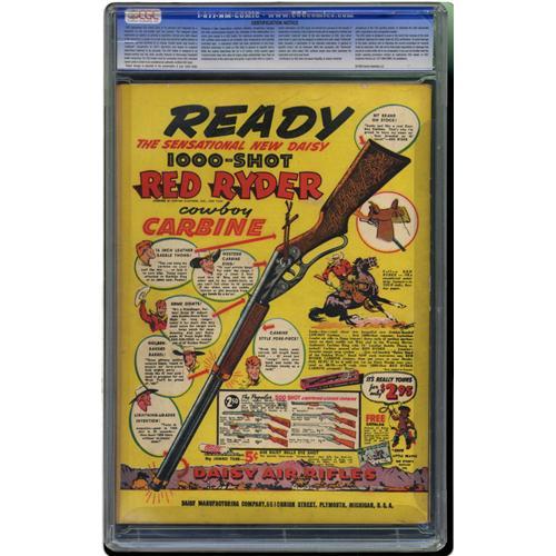 <B>Detective Comics #44 (DC, 1940) CGC VG/FN 5.0 Off-white pages.</B></I> Science fiction stories weren't common for Batman until the 1950s, so here's one of the earliest such tales, with the Dynamic Duo traveling to another dimension. The visuals are courtesy of Bob Kane and his helpers Jerry Robinson and George Roussos. Also of note is that the Crimson Avenger gets a new costume (more "superhero-like" garb) in this issue. Overstreet 2006 VG 4.0 value = $518; FN 6.0 value = $777. CGC census 1/06: 2 in 5.0, 5 higher. <I>From the Collection of Harold Curtis.</B></I>
