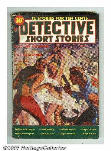 <B>Detective Short Stories V1#3 (Red Circle, 1938) Condition: VG/FN.</B></I> A wild "nude blond in bondage" cover will grab your eye with this pulp, the third issue of the title. Authors include Hugh B. Cave and Wyatt Blassingame. The Ultimate Guide to the Pulps VG value = $100.