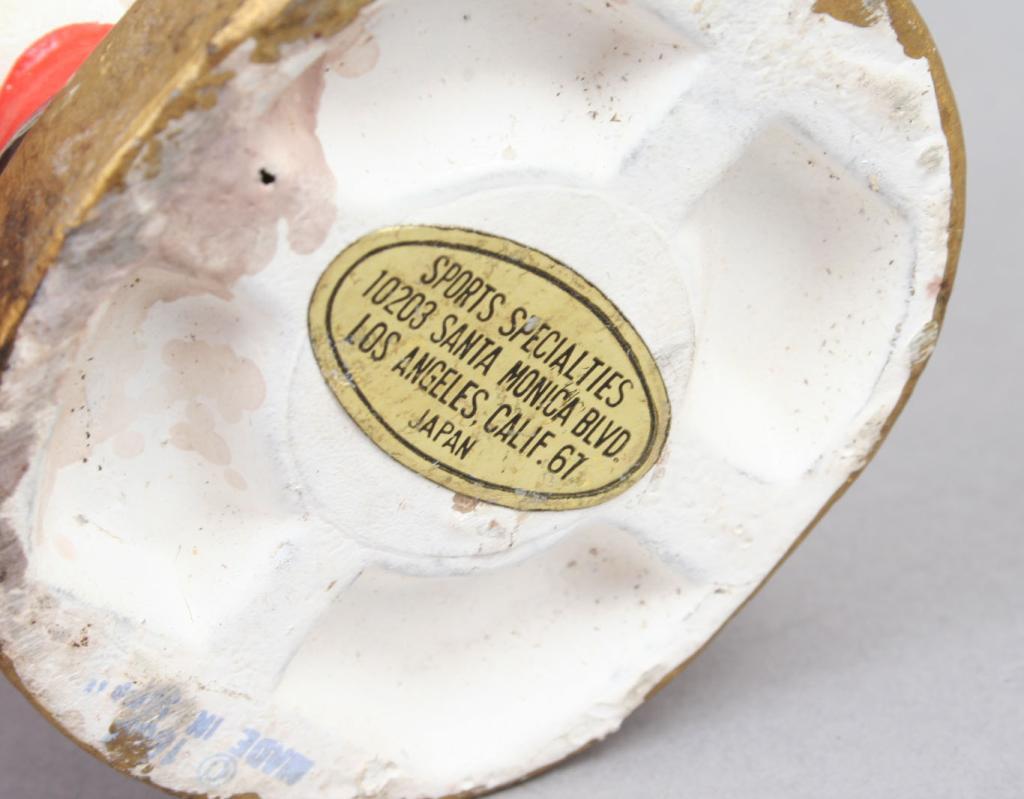 Japan, manufactured for Sport Specialties, Los Angeles, the details picked out in polychrome, the base applied with gold foil label and stamped in blue made in Japan. 7"H. Condition: light to moderate wear to painted surface, otherwise good.