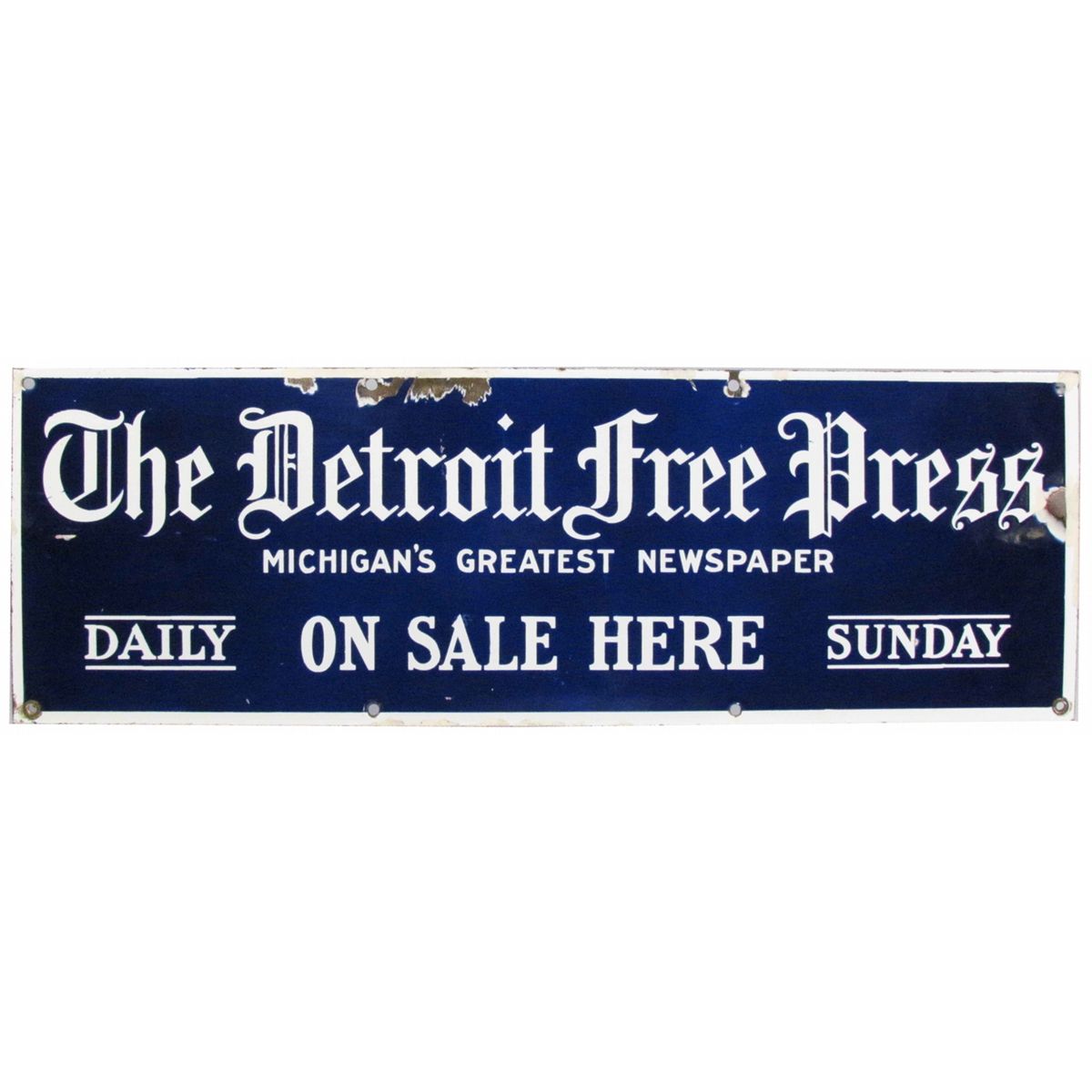 Detroit Free Press Porcelain Sign. A few chips around the edges otherwise good condition. 24 X 8 inches.