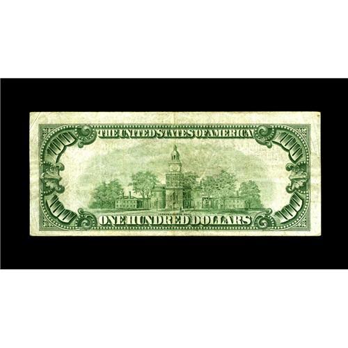 <B>Detroit, MI</B></I> - $100 1929 Ty. 1 <B>Guardian NB of Commerce</B></I> Ch. # 8703<BR>Here is an exciting serial number 1 note that is the top note from the first sheet for this denomination on this bank. Serial number 1 $100s are seldom observed and the chances of acquiring one are even slimmer. Traces of embossing remain in the bank title and the edges are sound. Certainly a great note destined for a great National collection. <B>Very Fine.</B></I>