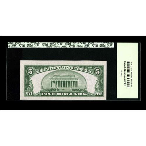 <B>Detroit, MI</B></I> - $5 1929 Ty. 1 <B>First NB</B></I> Ch. # 10527<BR>The last of the three notes in this wonderful set, with this serial number 1 example once again gaining the coveted PCGS grade of <B>Superb Gem New 68 PPQ.</B></I> Like the two notes above, it's hard to see how any note can combine the immense eye appeal with the technical near-perfection that this specimen possesses. This piece bears the last of the three titles used on small size notes by this institution. Our estimate here may well prove conservative if quality, rarity and desirability combine once again to produce their usual result.