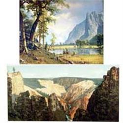 Detroit Publishing Company Hand Colored Photograph. "50502 Grand Canyon of the Yellowstone" circa 1902, 19.5" x 10", & Albert Bierstadt (1830-1902) Lithograph. "Yosemite" circa 1920's, 21.5" x 27.5". Estimate $400-$500.