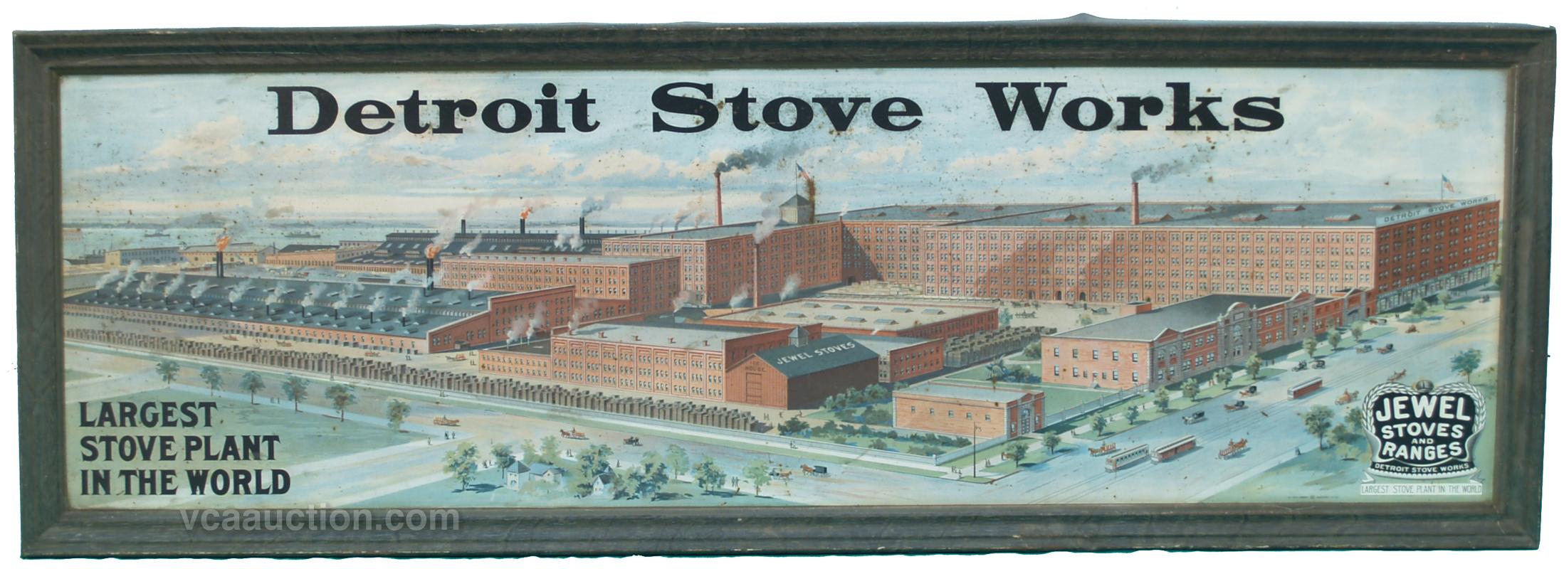 Detroit Stove Works Self Framed Tin Sign The Meek Co. - 37" x 13"