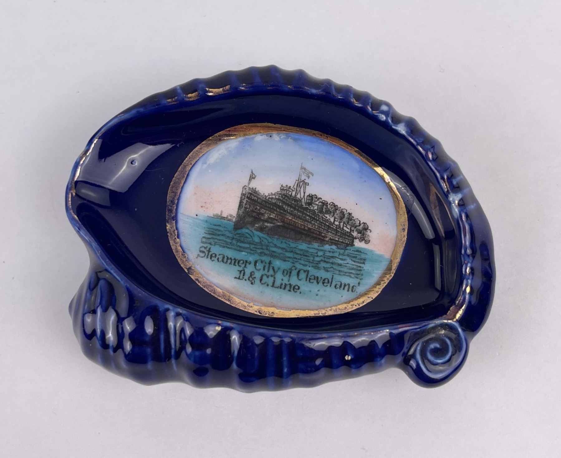 3 5/8" long, 2 3/4" wide, 1" tall. Steamer City of Cleveland D&C Line Souvenir Dish.