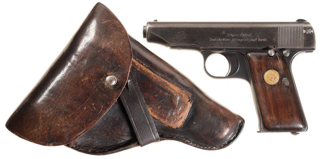 Deutsche Werke Ortgies Patent 9mm Pistol with Scarce Manual Button Safety and Holster