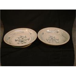 Deux plats creux à décor de fleurs dans un encadrement de feuillage. A lot of two deep dishes decorated with flowers in a foliate border. Dia./Dia. 9 1/2" - 24cm. $350/500