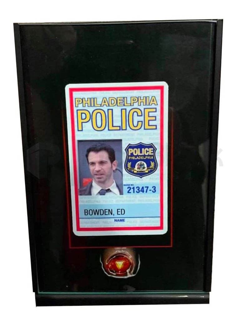 Police ID badge used in the production of the 2010 M. Night Shyamalan film Devil. A group of people are trapped in an elevator and the Devil is mysteriously amongst them. This ID belonged to the character of Detective Bowen, actor Chris Messina and features a custom made acrylic display featuring the films logo. This item remains in excellent, production used condition.