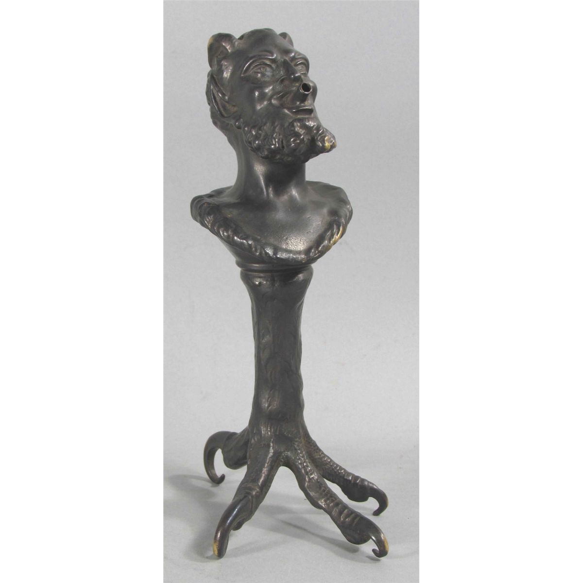 Devil Figural Cigar Lighter. Cast iron on eagle claw base. Excellent condition. 9 inches tall. Start Price $100