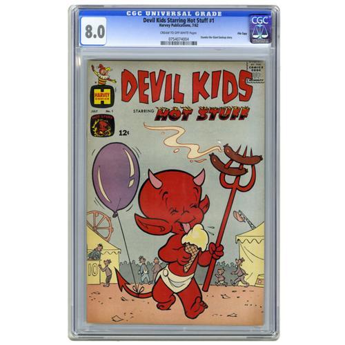 <B>Devil Kids #1 File Copy (Harvey, 1962) CGC VF 8.0.</B></I> Starring Hot Stuff the Little Devil. Stumbo the Giant stars in a backup story. Overstreet 2006 VF 8.0 value = $129. CGC census 2/06: 3 in 8.0, 3 higher.