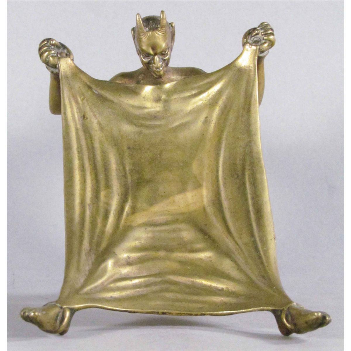 Devil Motif Brass Tray. Back stamped 0916 TP & S. Excellent condition. 4 X 6 X 2 inches. Start Price $30