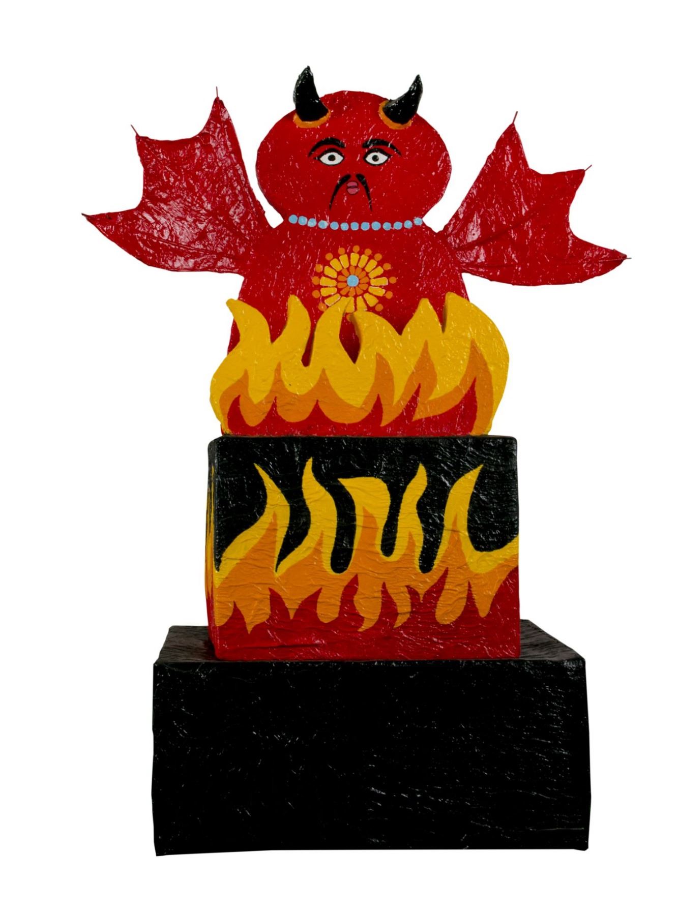 (2000) An original papier mache sculpture created by Rolly Crump. This sculpture depicts a devil character, and is accomplished in acrylic on papier mache. The sculpture measures approximately 30.5" tall and is in very good condition with little wear.