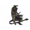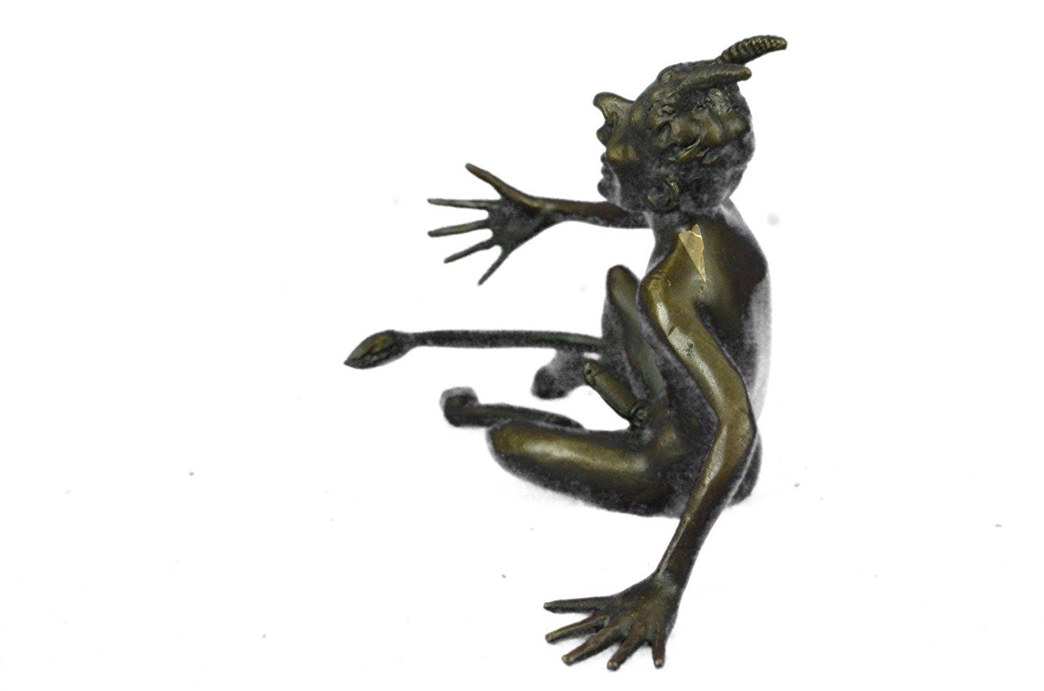 This creepy and very scary satyr is chasing around a nymph, but she is not interesting in him and his overly persisting arouse self. She is happy with her main Satyr, but has not taking no for an answer chasing her all around. His arms and hands are extended and spread out as he is trying to grab something or someone. His devil face and horns are very frightening to look at. This Satyr mythological creature could not be completely understand. This sculpture is made from solid bronze and was casted using the Lost Wax Method. It has a brown patina for preservation. Bronze Dimensions: Height 5 X Width 7 inches. Weight: 2 LBS. Inventory: 21YRD12122212