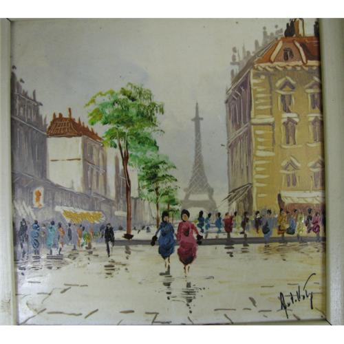 <tr><td>Title:Devity 4 Oil & Tile Paintings A Street in Paris</td></tr>