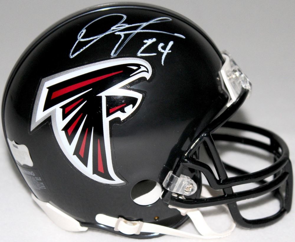 Atlanta Falcons mini helmet. Hand-signed in white paint pen by Devonta Freeman.