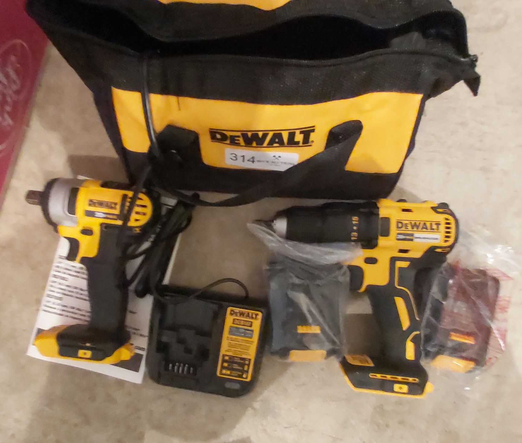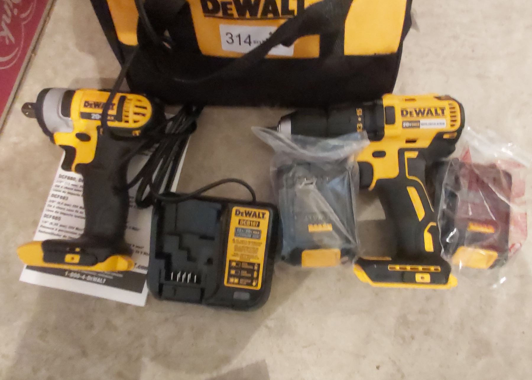 Dewalt Bag with Drill and Impact Plus Two Batteries