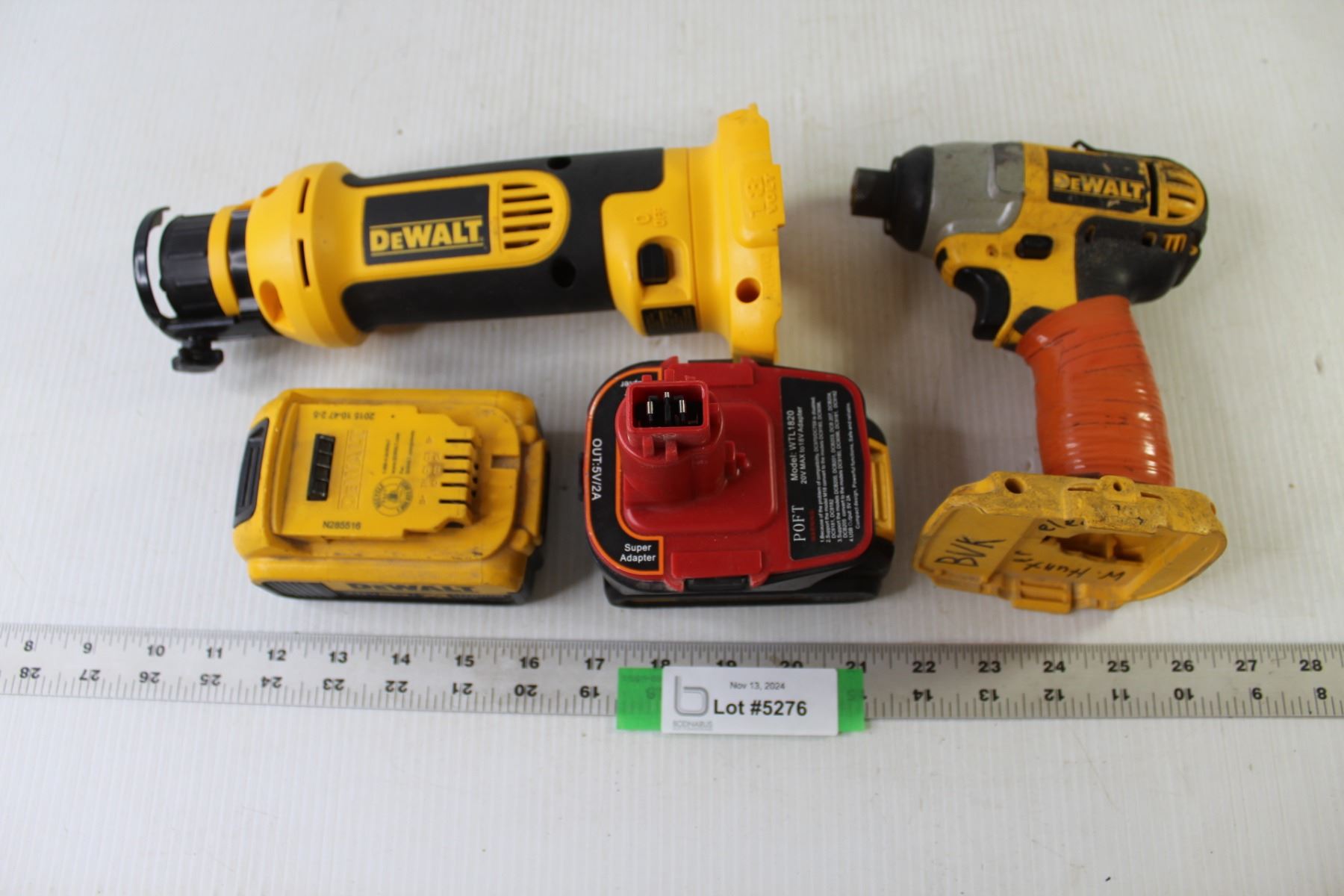 Dewalt Cordless Impact Driver - As is, Dewalt DC550 Cordless Cut-out Tool - As is, (2) Dewalt Rechargable Battery Packs - As is