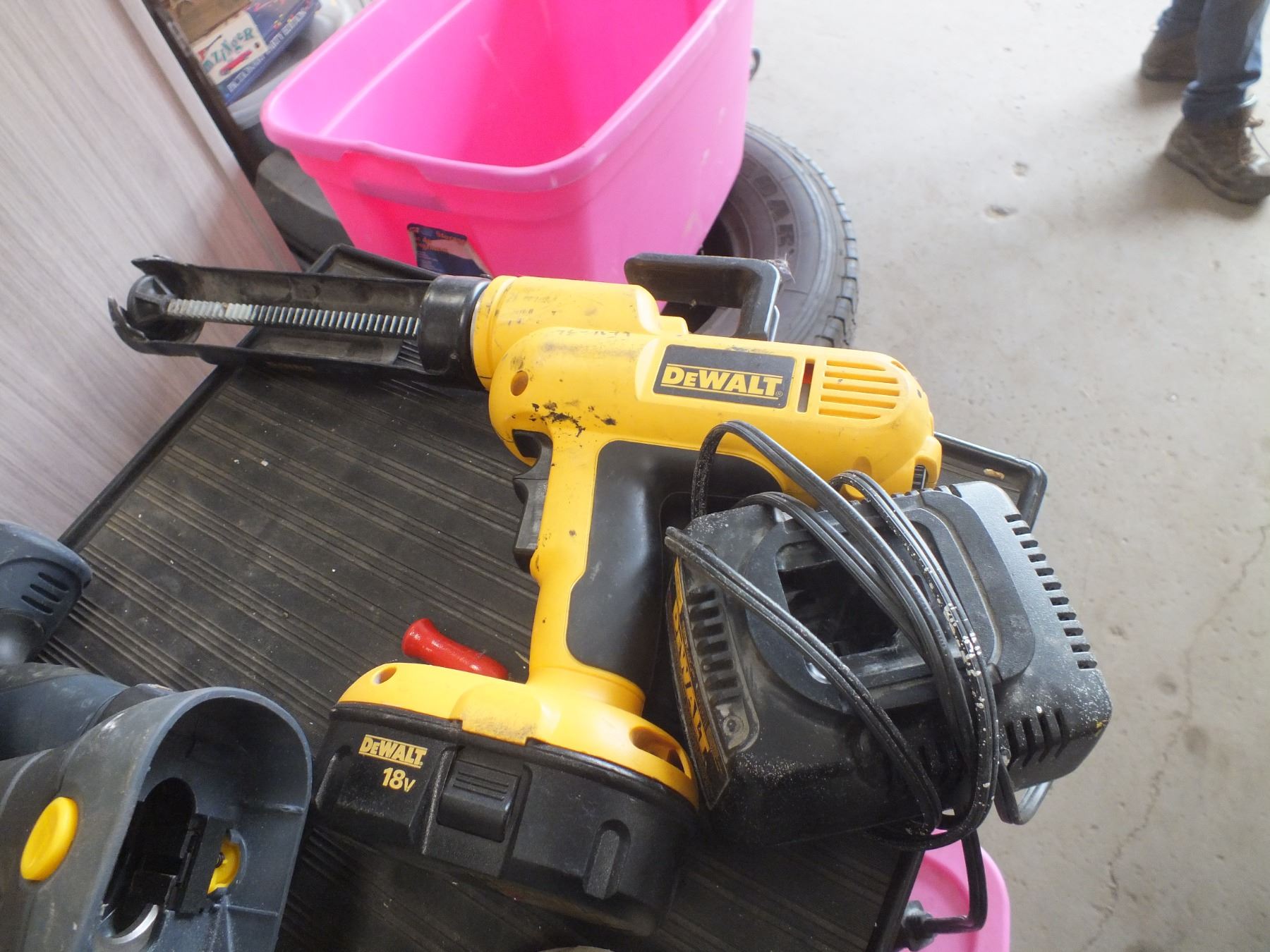 you get 1 drill and 1 caulking gun, both are 18 volt, comes with 2 batteries and 1 charger...used