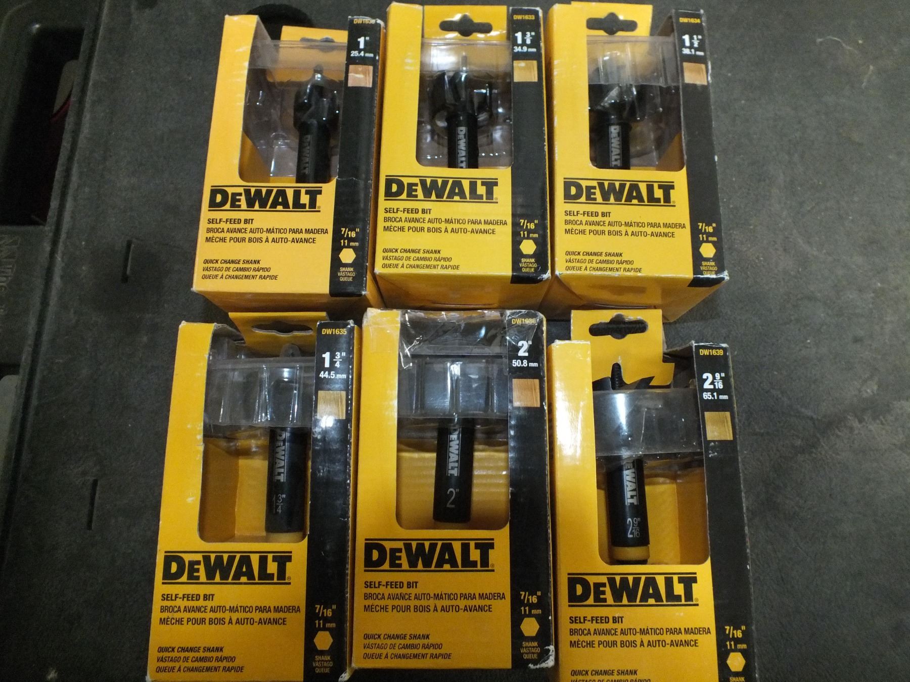 Dewalt Self Feed Bits, 7/16" shafts, you get 6 bits in total, 1", 1 3/8", 1 1/2", 1 3/4", 2", 2 9/16"....all New