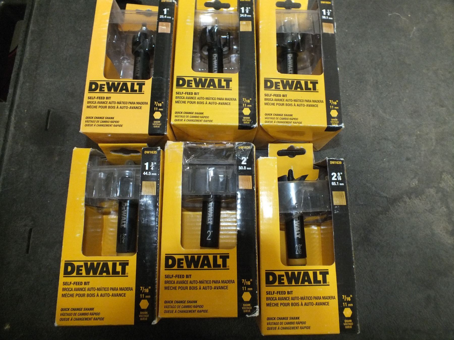 Dewalt Self Feed Bits,7/16" shafts, you get 6 bits in total, 1", 1 3/8", 1 1/2", 1 3/4", 2", 2 9/16"....all New