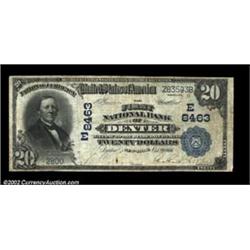 Dexter, NY - $20 1902 Plain Back Fr. 652 The First NB Ch. # (E)8463The only bank in this remote Jefferson County community to issue, and very rare in large size, with just three such examples recorded in the Kelly census. With only $980 outstanding in large notes by 1935, don't expect to see many others come out either. Nice pen signed Fine. Important notice: We expect to be auctioning lots at the rate of 200-250 per hour. Sometimes eBay Premier live bid software cannot keep up with that pace, so we strongly recommend that you place a realistic proxy bid now as insurance to avoid disappointment. Also please note that all Heritage/CAA lots purchased through eBay Premier carry a 20% Buyer's Premium. Please make sure you read the Terms and Conditions.