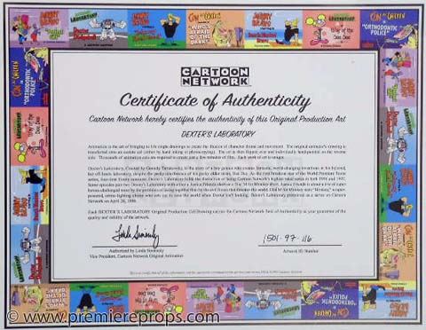 DEXTER'S LABORATORY: Dexter Face Off w/ Kid Original Animation Cel (12.5" x 10.5" / original production cel featuring a kid in an orange hat and Dexter both looking perplexed / includes certificate of authenticity from "Cartoon Network" / cel is not matted) (#0116)