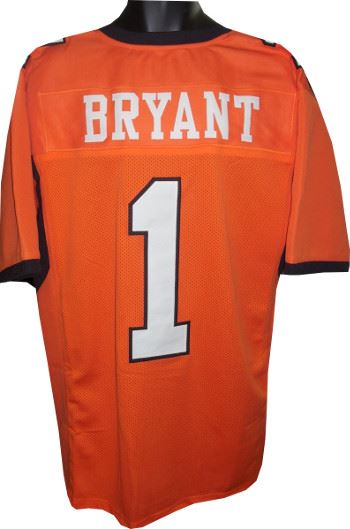 Dez Bryant attended Oklahoma State University, where he played in 2007 and 2008. Bryant finished the 2008 season for Oklahoma State with 87 receptions for 1,480 yards and 19 touchdowns, including 2 punt returns for touchdowns. This is a Dez Bryant Oklahoma State Cowboys unsigned Orange unlicensed custom-prostyle jersey with twill stitched nameplate and numbers. perfect for autograph or to wear! Size XL