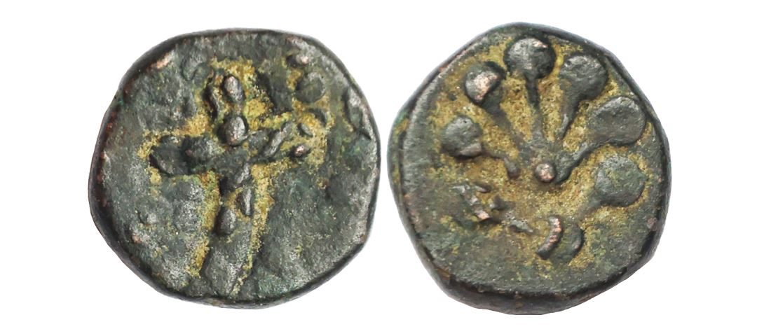 Dhar State, Annonymous Issue, Copper ½ Paisa, 4.50 gms, Obv. Stylized flower, Rev. sword, Unlisted in KM, very fine, very scarce