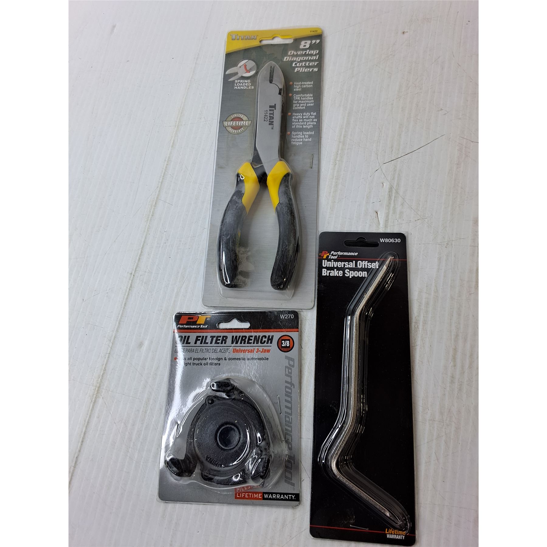 Diagonal Cutter Pliers, Metric Extractor Set, Oil Filter Wrench, Misc.