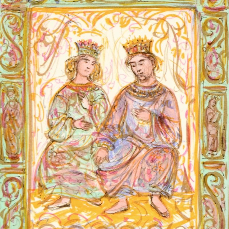 "Dialogue of David and Bathsheba" is a limited edition lithograph on paper with remarque by Edna Hibel (1917-2014), numbered and hand signed by the artist. Includes Certificate of Authenticity. Measures approx. 12.5" x 17" (border), 6" x 8" (image).