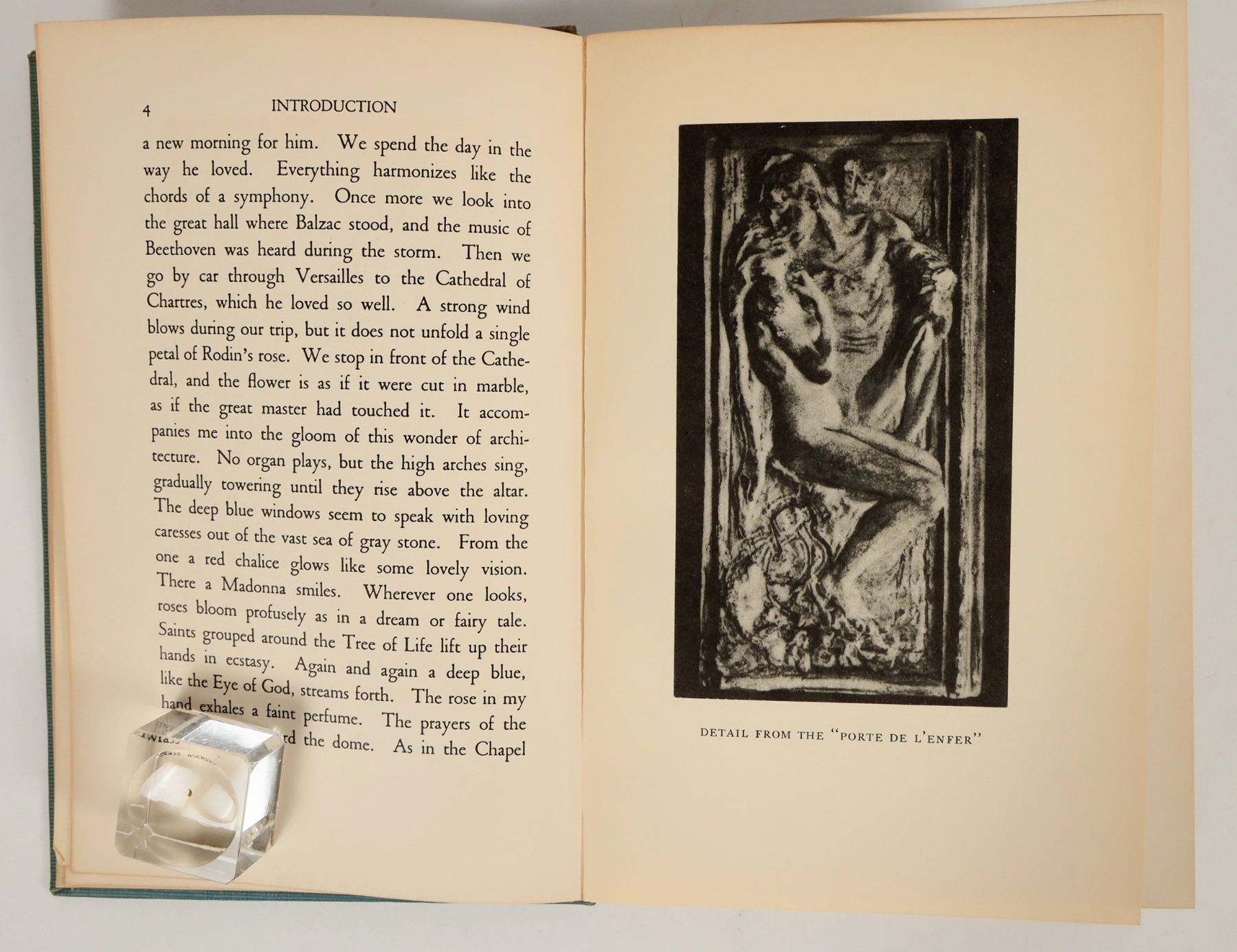 1931 , Dialogues With Rodin by Helene Von Nostitz Hindenburg. Signed by Rodin on cover and under photo at title page. Hardbound, 84 pages. In very good condition. The authors conversations with the sculptor Auguste Rodin, his life, art and philosophy with drawings and photos of his sculptures.
