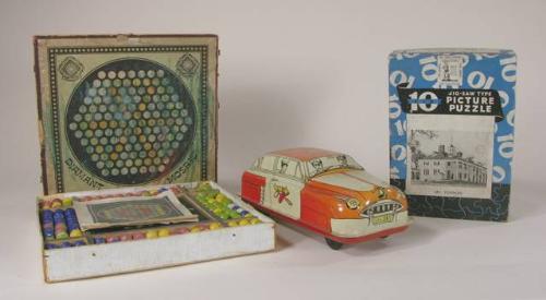 Diamant Mosaic German marble game, Mt. Vernon Jig-Saw type puzzle and Lupor tin friction car. Good cond.