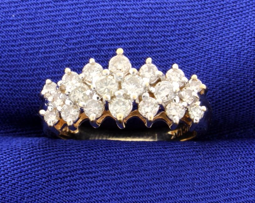 The diamonds are brilliant cut and have a clarity of SI-I1 and color J-K-L. Size 7. 3.5g