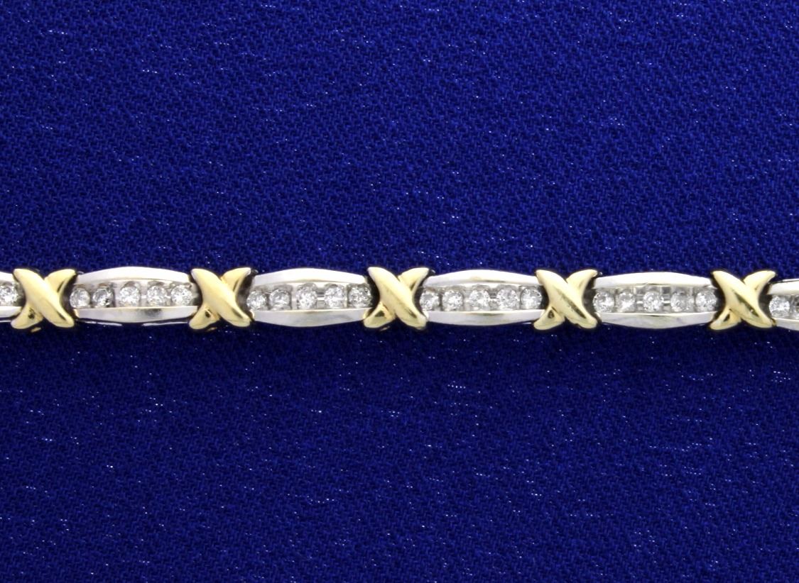 70 Brilliant Cut Diamonds SI2-I1 clarity and H-I-J color. 7" long. The diamonds are set in a channel with yellow kiss in between! Very nice condition with nice matching diamonds. 12.7g