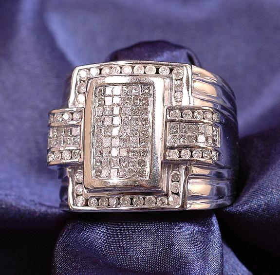 Diamond 14K White Gold Ring. Decorated by 78 invisible and channel set Princess-cut diamonds, along with 46 channel set round full-cut diamonds, all weighing a total of approximately 2.25 carats, measuring approximately 21.00 mm in width, gross weight 25.10 grams, ring size 10.