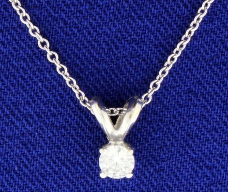 The diamond is a 1/5 carat. The clarity is I1 and it is H color. The chain is 14k white gold and 18" long. This is a very bright diamond - you won't be disappointed! 1.6g