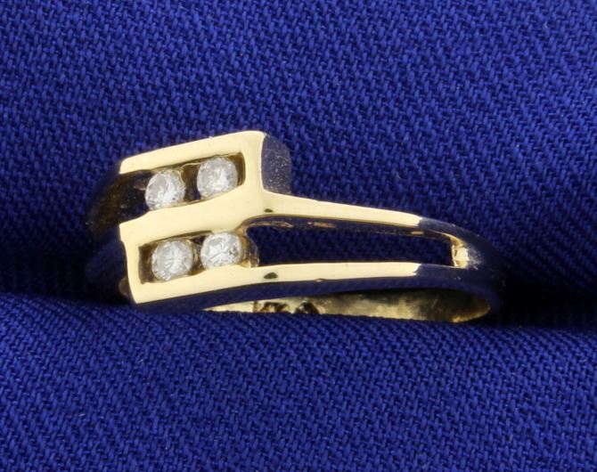 There are 4 brilliant cut diamonds that are 0.10 carats total weight. SI2-I1 clarity and I-J color. Size 6.5. 2.4g