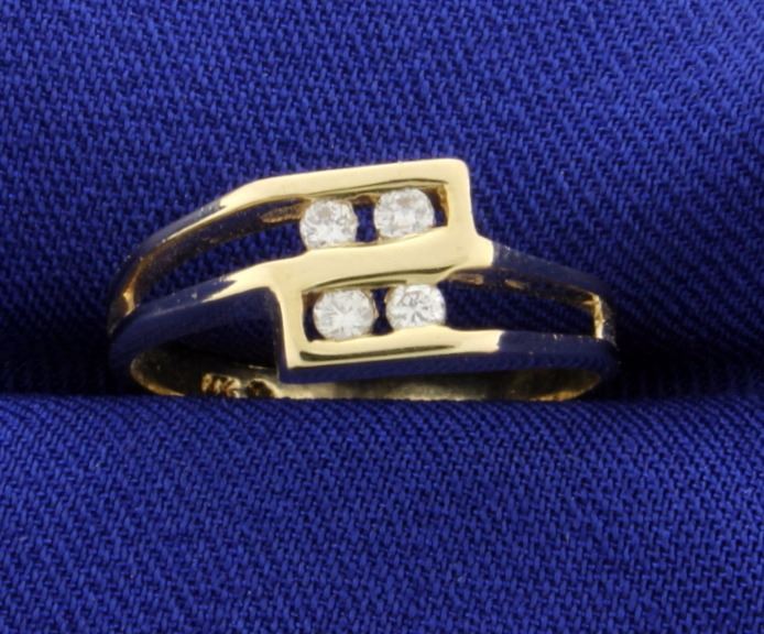 There are 4 brilliant cut diamonds that are 0.10 carats total weight. SI2-I1 clarity and I-J color. Size 6.5. 2.4g