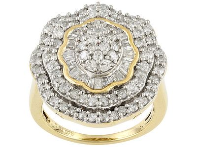 Diamond 2.00ctw Round & Baguette 14k Yellow Gold Over Sterling Silver Cluster Ring JUS136