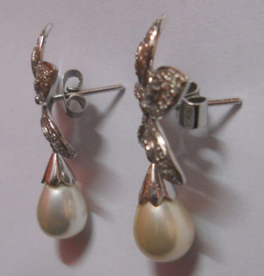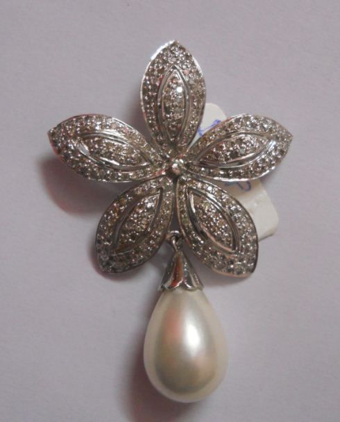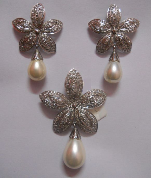 Diamond 2.32 Ctw ,Pearl 20.09 Ctw and 92.5 Silver 21.69g Pendant and Earring Set