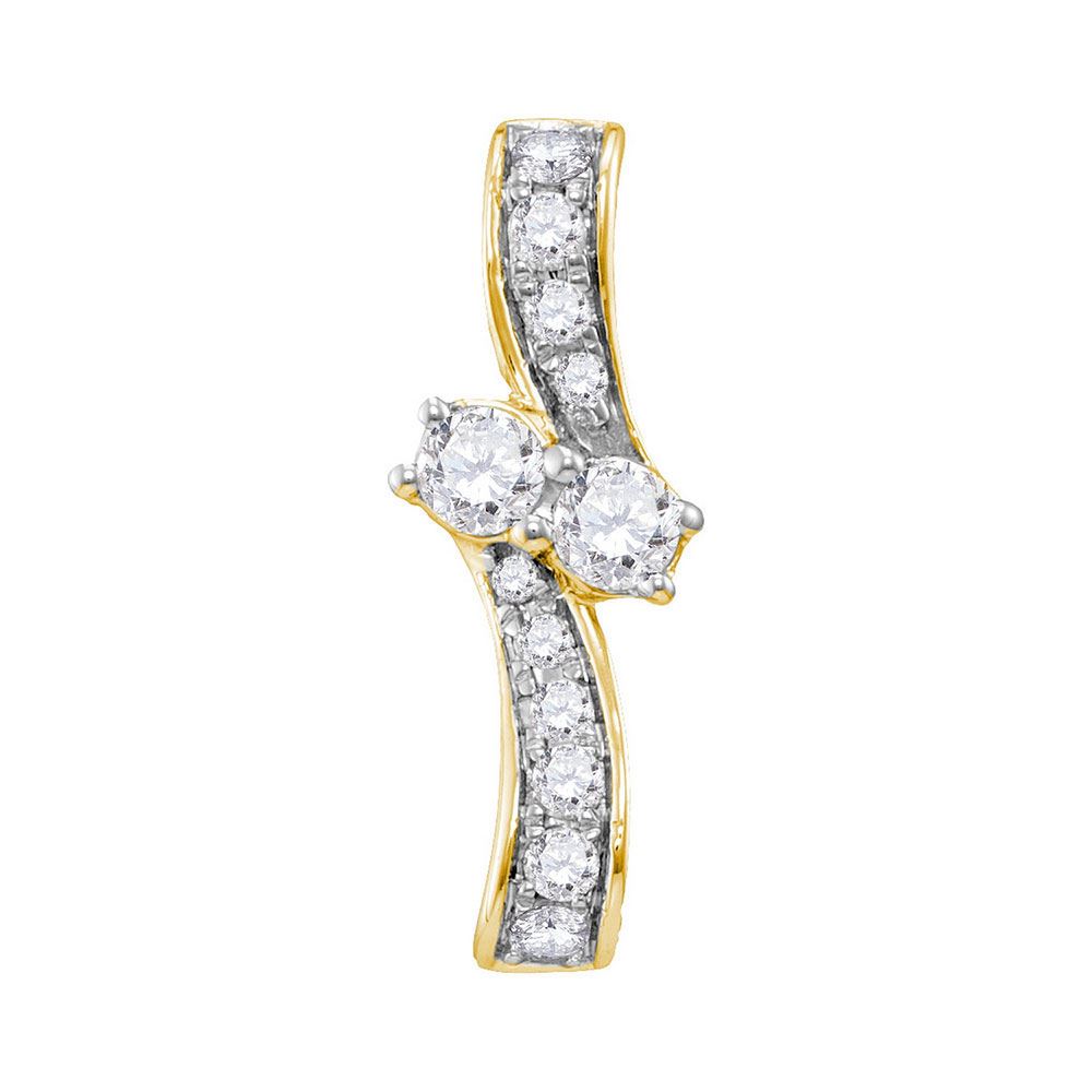 14kt Yellow Gold Womens Round Diamond 2-stone Hearts Together Pendant 1/4 Cttw