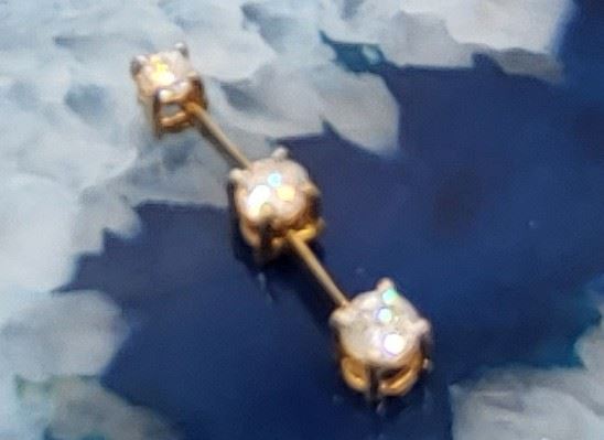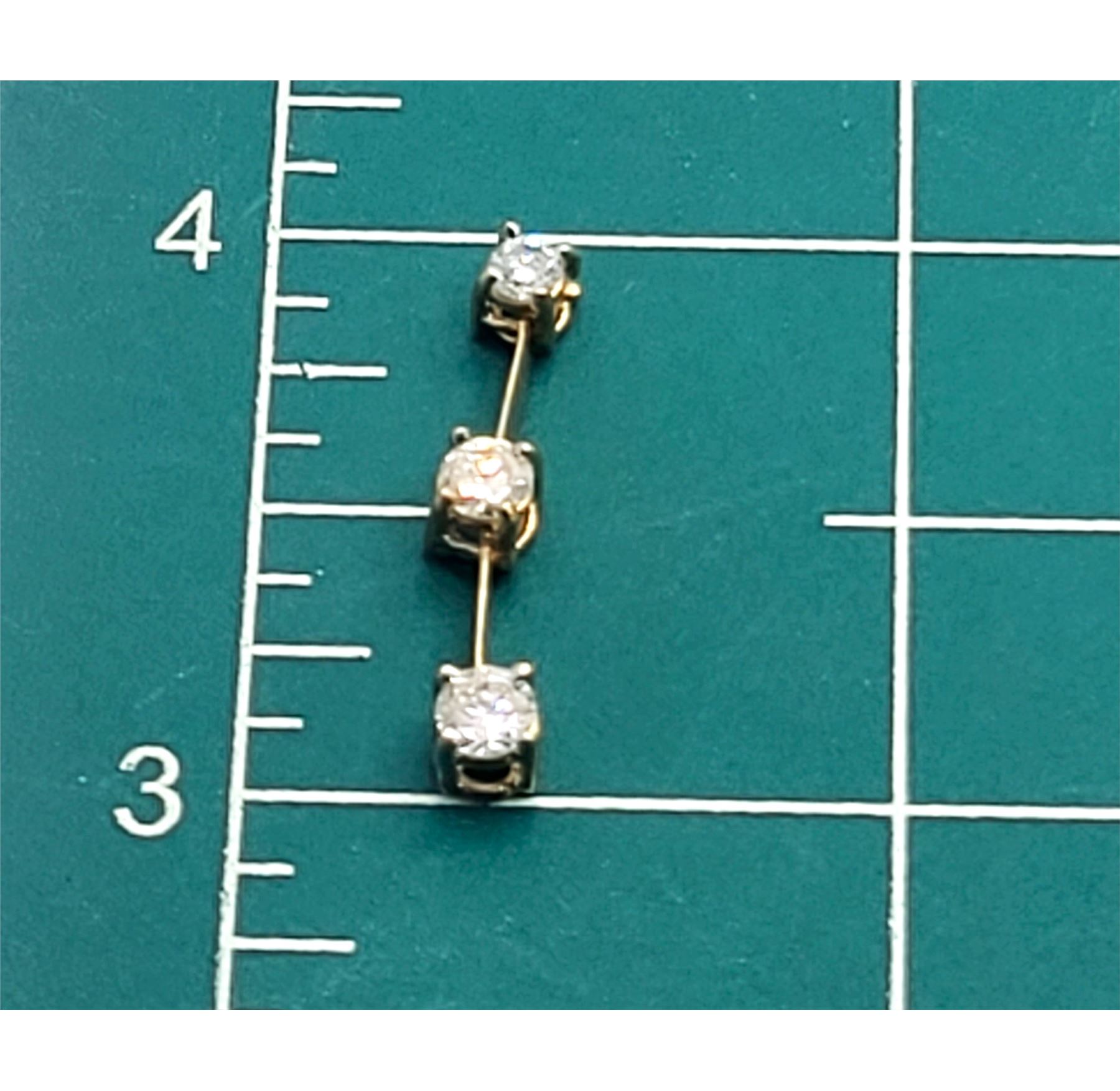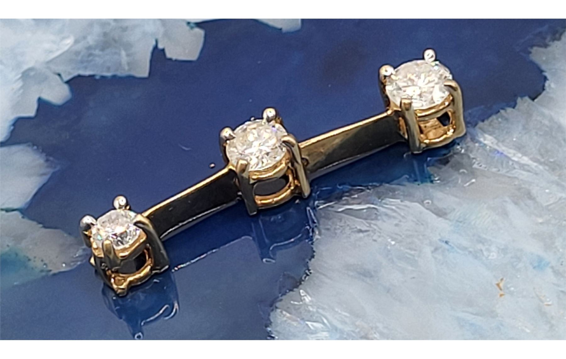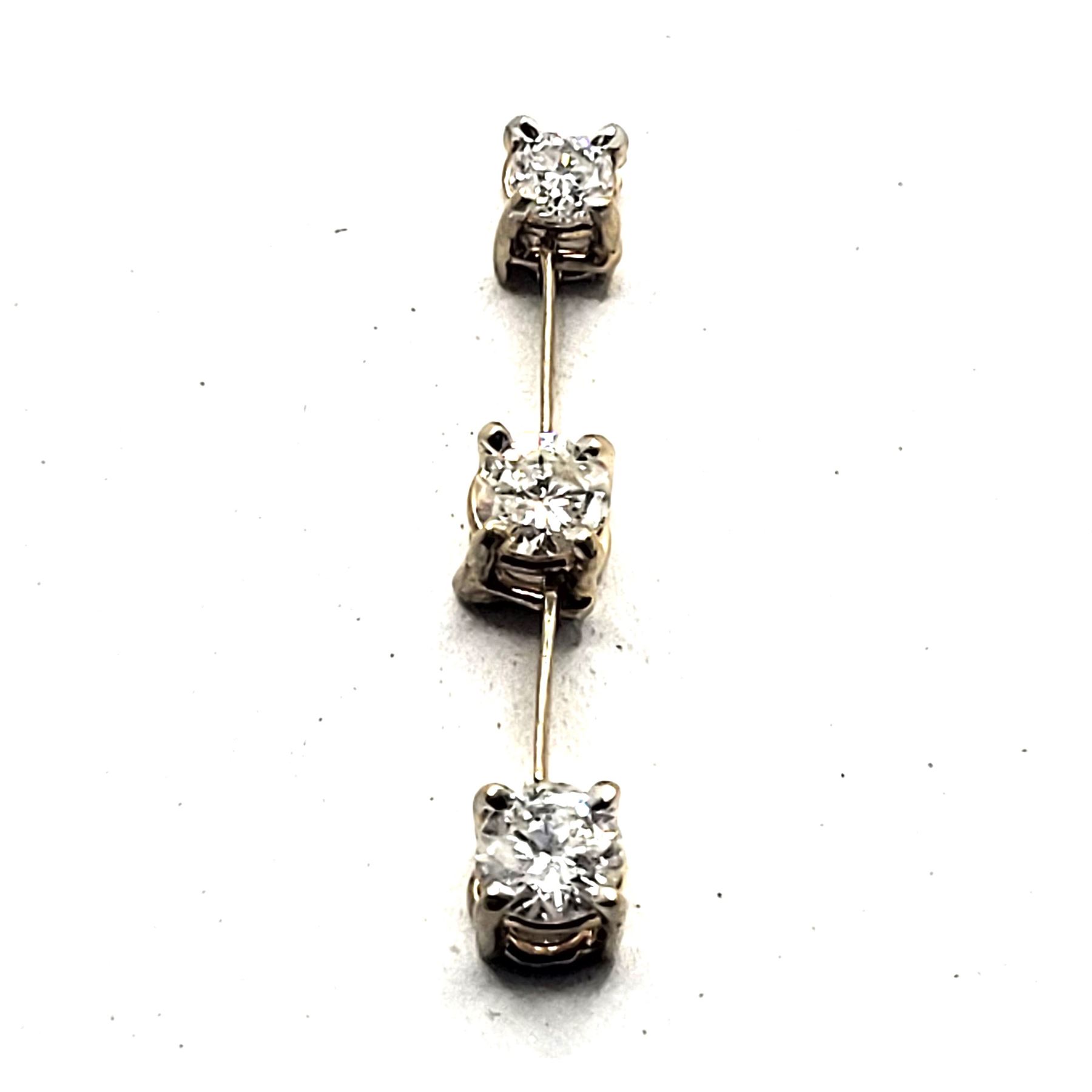 This is a 14 karat yellow gold pendant with three diamonds in a vertical row, that has long been associated with the Past, Present, and Future!& nbsp; There are approximately .60 carats total weight of H, SI2, round, brilliant-cut diamonds.& nbsp; The vertical pendant is constructed with 2 segments that are hinged together, allowing the pendant to move, as a dangling earring would.& nbsp; The pendant is approximately 7/8& quot; long with a built-in bail.& nbsp; The pendant bears the hallmark CI, for Caspian International, a jewelry manufacturing company that is/was in North Carolina. Admin: 12kj329/hh