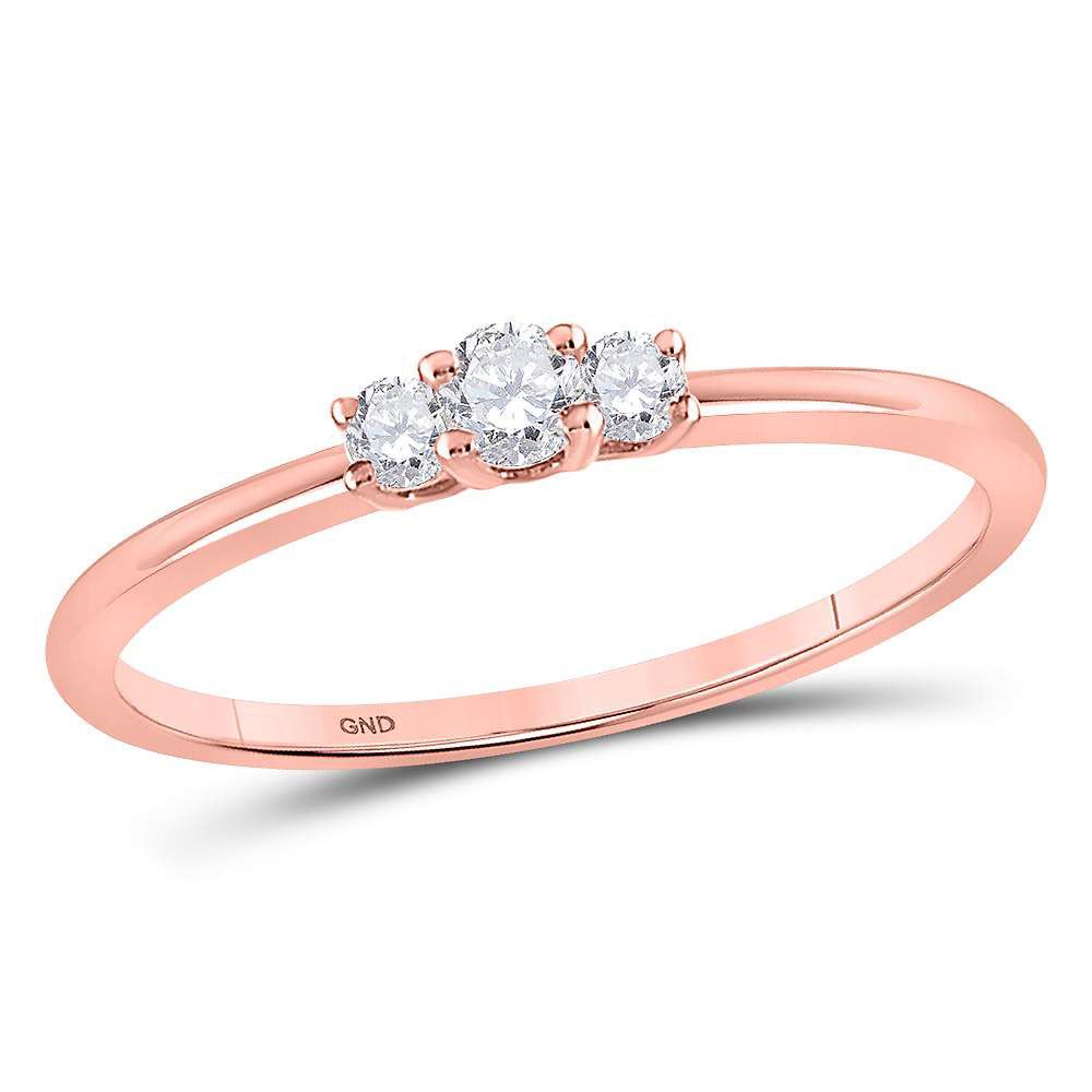 REF-19N1F - SKU: GD119494 ---- Diamond 3-stone Promise Bridal Ring 1/6 Cttw 10kt Rose Gold