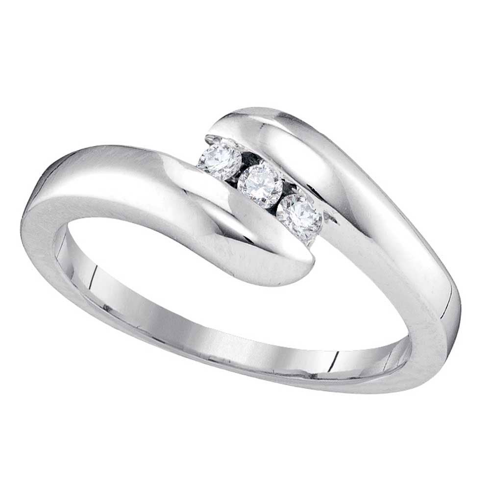 REF-22V7A - SKU: GD97455 ---- Diamond 3-stone Promise Bridal Ring 1/8 Cttw 10kt White Gold