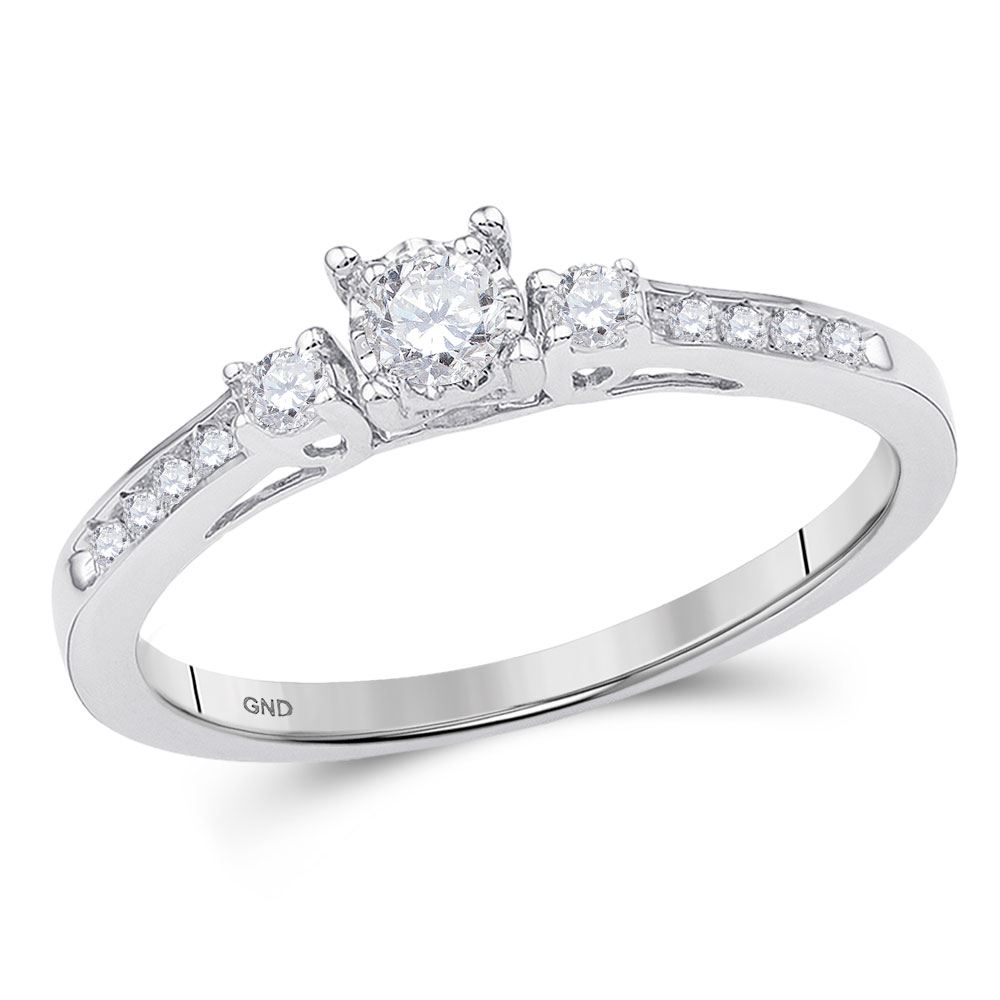 10kt White Gold Womens Round Diamond 3-stone Promise Ring 1/6 Cttw