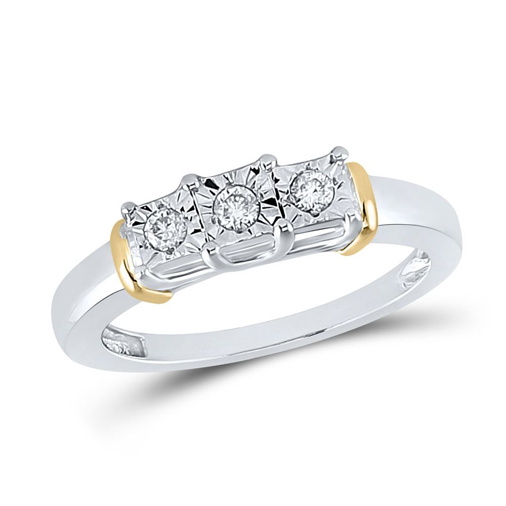 Sterling Silver Womens Round Diamond 3-stone Ring 1/8 Cttw
