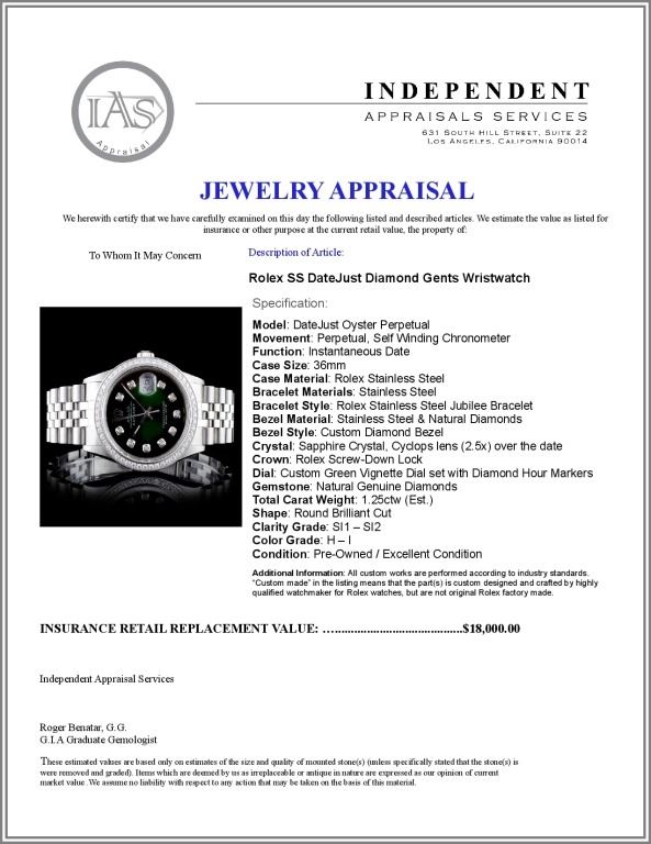 Dial: Custom Green Vignette Dial set with Diamond Hour Markers