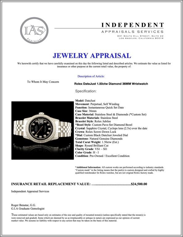 *Dial: Custom Black DateJust Jeweled Dial